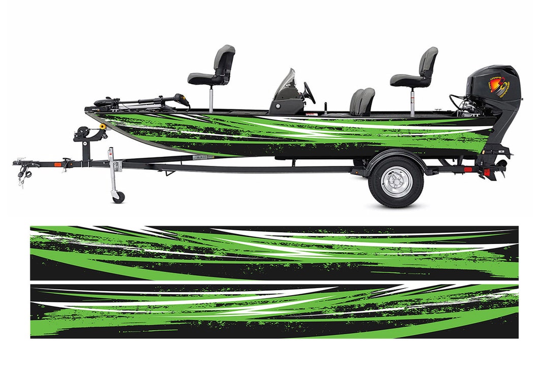 Graphic Abstract Fishing Bass Boat Wrap Green Decal Vinyl Skeletons Fish Pontoon Ebay